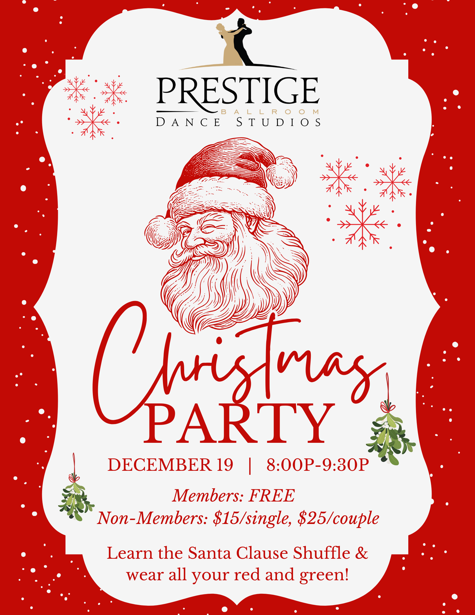 Tuesdays 7:15pm - Technique Class - Open to ANY student currently taking lessons. You do not have to be taking lessons with Prestige Ballroom to attend. ALL students are welcome.